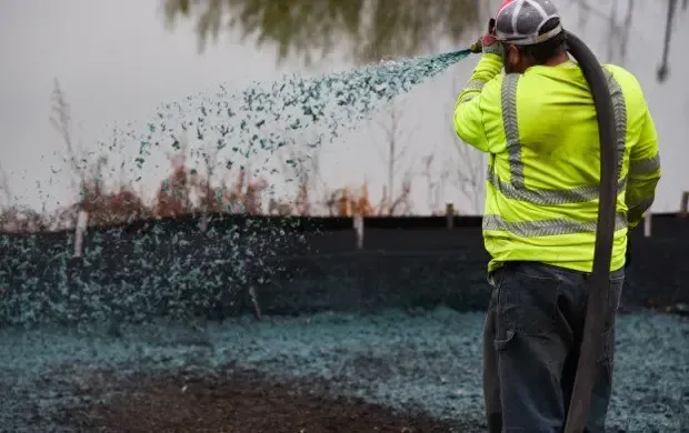 The hydroseed mixture, containing grass seed, fertilizer, mulch, and binding agents, is applied using specialized spraying equipment. This hydraulic application ensures even distribution across the designated area. The mixture creates a protective mat that holds seeds in place while providing essential nutrients.